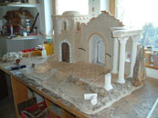 Die Krippe mißt 110 mal 75 cm und ist im orientalischen Stil für 20 cm