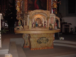 Für den rechten Seitenaltar der Kirche in Berneck im Schweizer Rheintal erstellten wir 2004 eine weitere Kirchenkrippe in ca. 400 Arbeitsstunden.