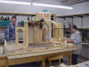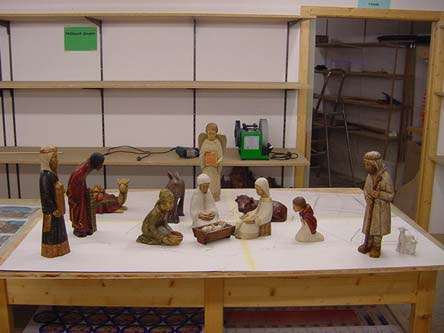 Auf einer Grundplatte von 180 x 120 cm steht die Krippe für die Kapelle des Spitals Hohenems. Figuren der Höhe von 44cm finden darauf Platz. Die Krippe wurde im Frühjahr/Sommer 2003 von Helfern und Meistern des Krippenbauvereins erbaut.